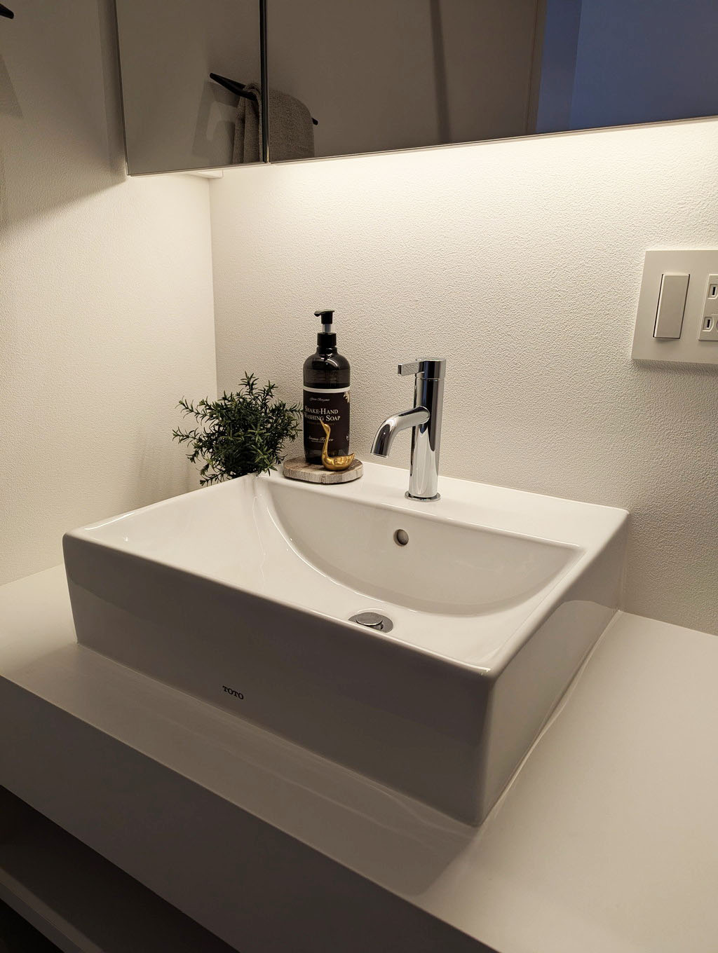 ウォークインクローゼットとシューズクロークで豊富な収納力。洗面室は間接照明が美しい上質な空間を演出します。