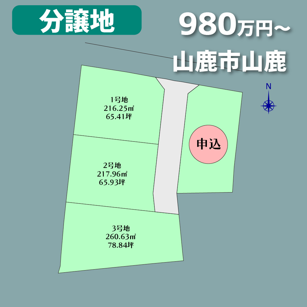 | 1号地 | 216.25㎡(65.41坪) | 980万円 |