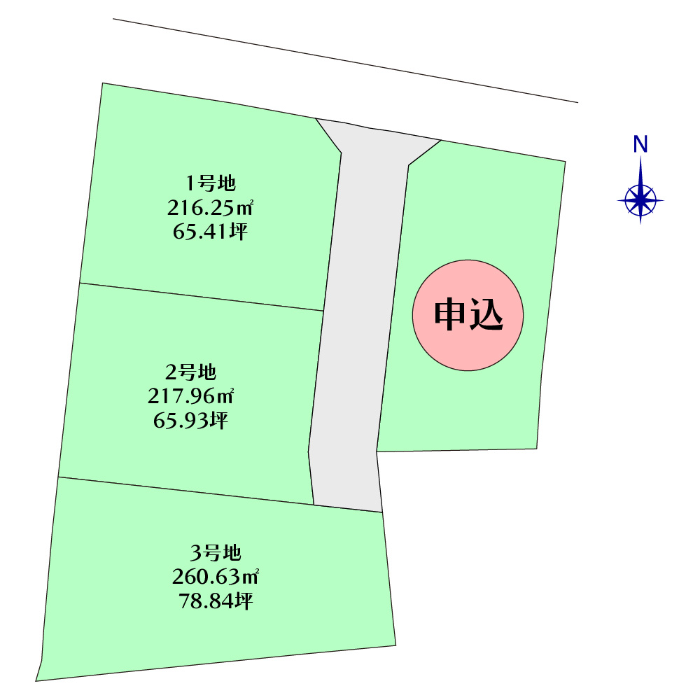 | 3号地 | 260.63㎡(78.84坪) | 1,050万円 |