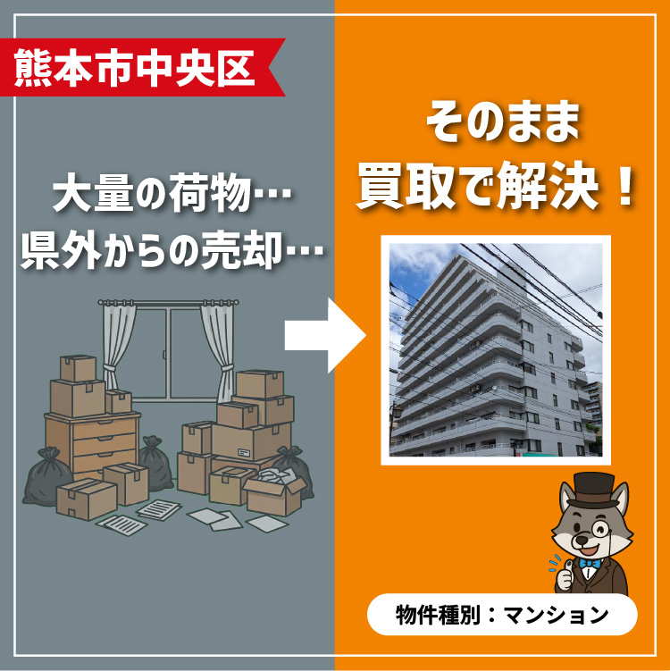 今回は、熊本市中央区にある築37年のマンションを相続された県外在住のお客様が、当社の「買取」サービスを利用して、荷物の悩みから解放された事例をご紹介します。